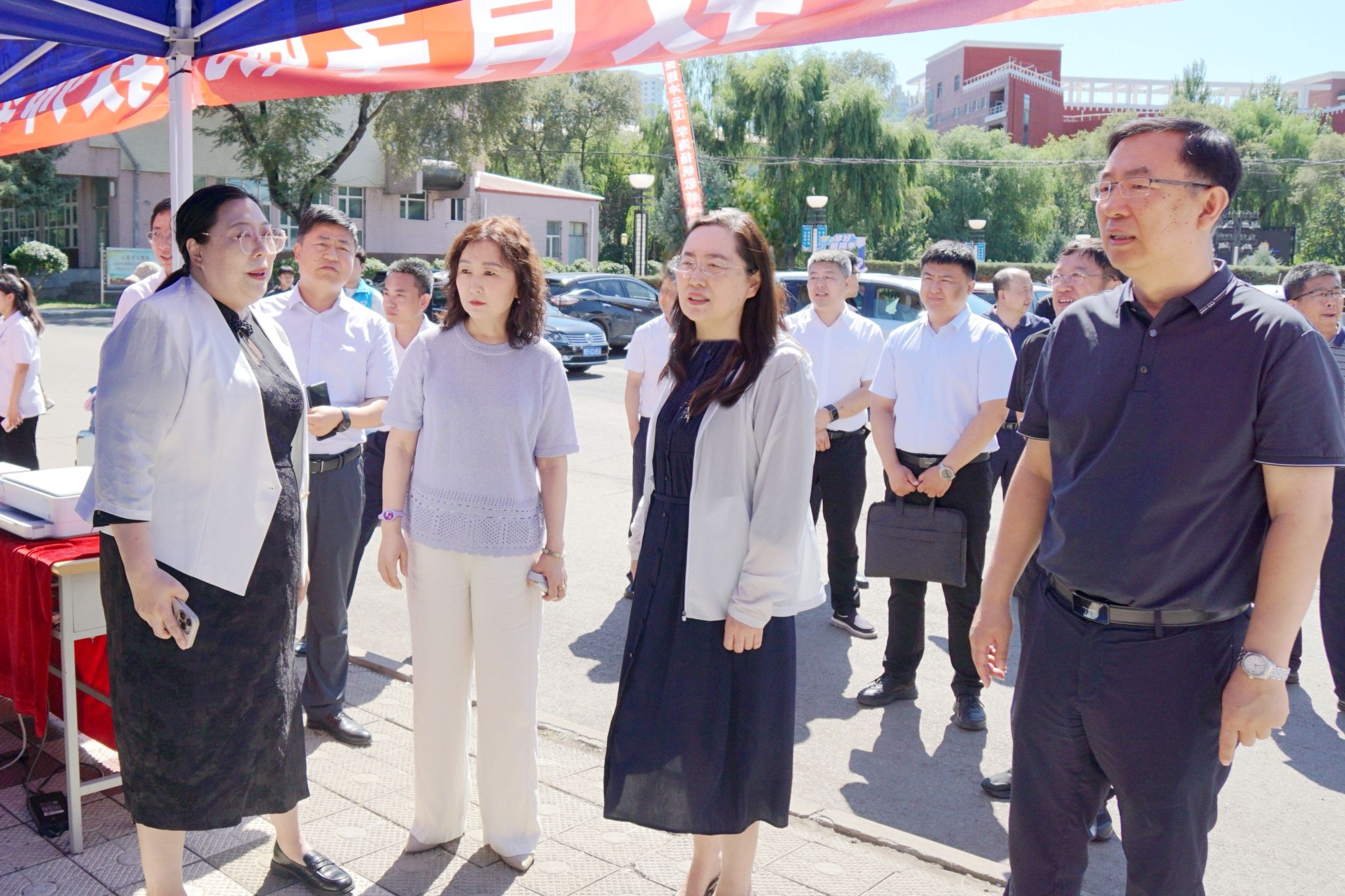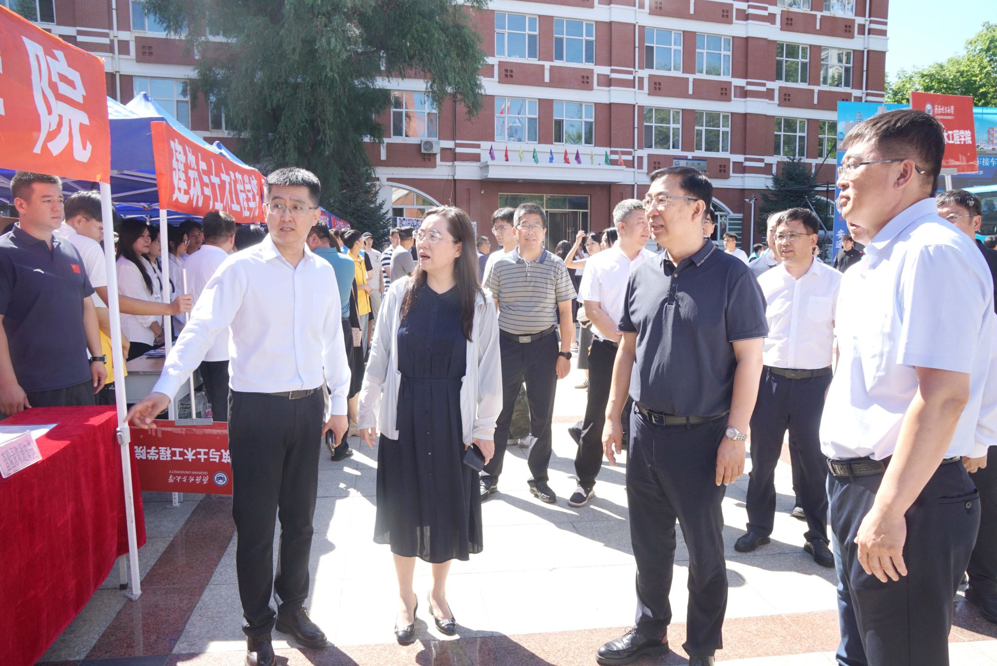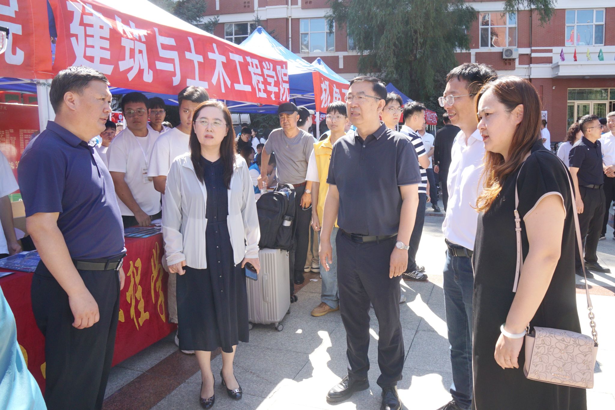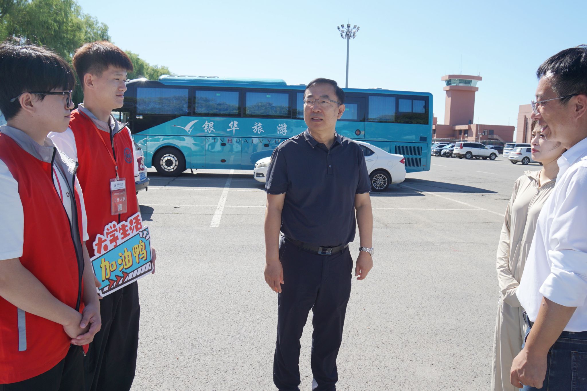 校党委书记丁宏,校长、党委副书记郝文斌深入“两站一场”,并带领全体领导班子成员走访中区、东区各学院迎新点,详细了解迎新工作进展,与新生及家长亲切交流,欢迎他们加入sunbet申搏官方网站温暖大家庭,并向参与迎新工作的师生以及志愿者表示慰问。