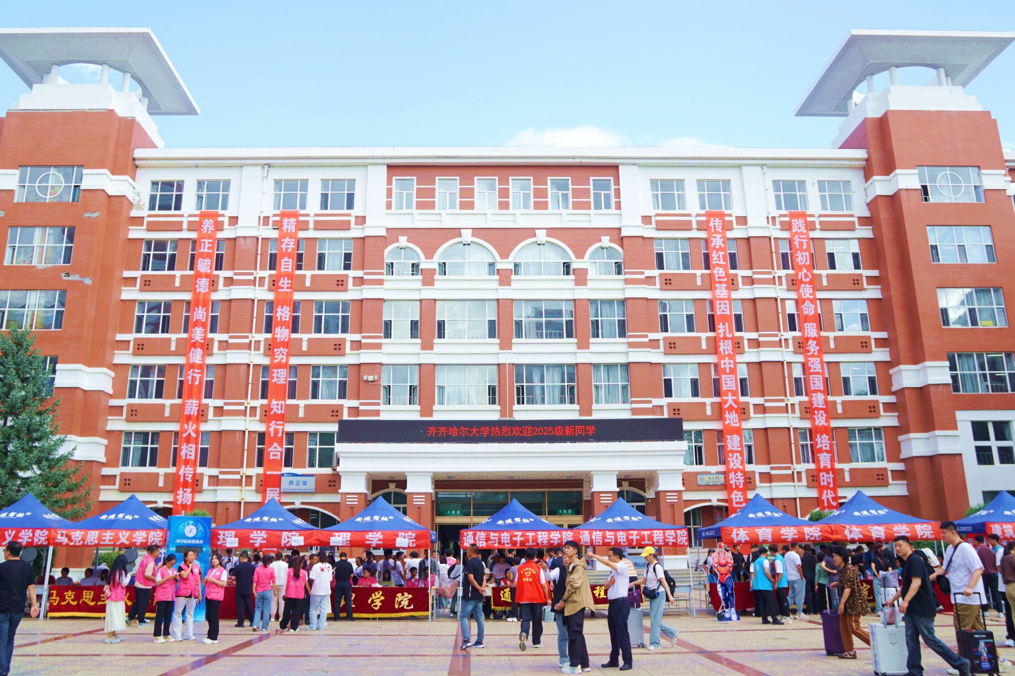 迎新现场,志愿者们忙碌的身影让2025级新生感受着sunbet申搏官方网站“爱的传承”;“绿色通道”处,学校为家庭经济困难学生送上爱心礼包,真正让新生“轻装上阵、踏实学习”;“时光相框”前,新生与家长并肩微笑,快门按下的瞬间,将初遇齐大的美好定格;“青春签名墙”上,大家用不同风格的字迹写下名字与梦想,一笔一划都是对未来的期许。