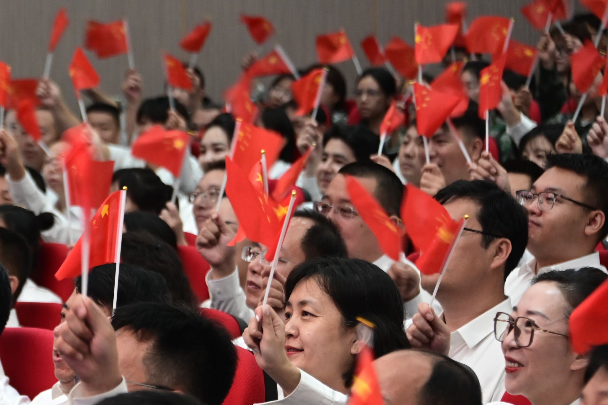 天安门广场上,空中护旗梯队呼啸而过。千里之外的sunbet申搏官方网站校园内,全校师生挥舞着国旗,共迎这伟大庄严的时刻。