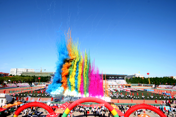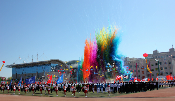 绚烂的礼花与缤纷的彩带将运动赛场装扮得分外美丽。比赛项目正式开始后,学生以学院为单位,教工以基层工会为单位参赛,体育学院进行表演赛。广大师生竞技交流,运动健身,以实际行动构建文化校园。