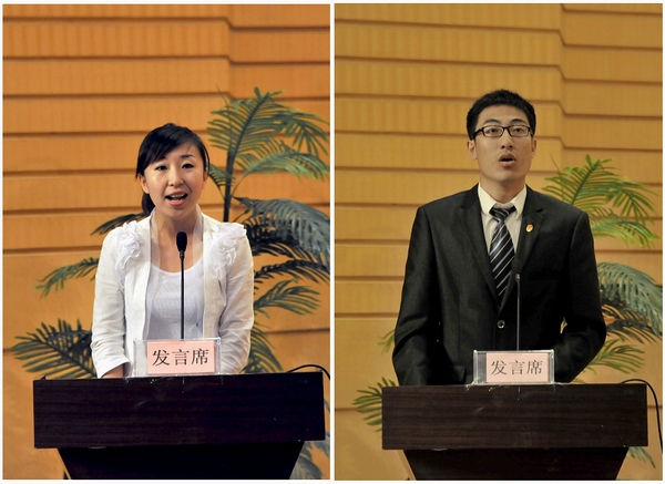 培训教师代表、科技处赵璐璐老师和学生志愿者代表、文史学院王鸿博同学分别代表全体培训教师和学生志愿者发言。他们表示,要以饱满的热情投身校庆,融入校庆,服务校庆,以实际行动展示齐大形象,诠释爱校荣校情结,为学校校庆服务工作交上一份最完美的答卷。