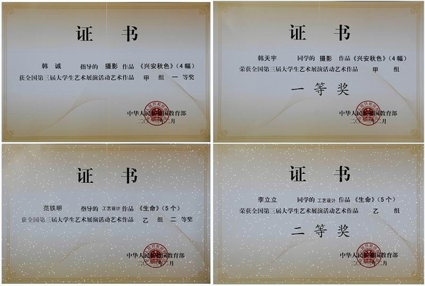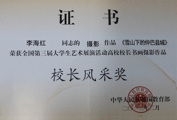 日前,由教育部主办的全国第三届大学生艺术展演活动圆满结束,sunbet申搏第三次荣获全国优秀组织奖,学校党委书记李海红同志的摄影作品《日喀则郭加村的孩子们》和《雪山下的仲巴县城》荣获全国第三届大学生艺术展演活动高校校长书画摄影作品校长风采奖;美术与艺术设计学院韩城老师指导的韩天宇同学的摄影作品《兴安秋色》获艺术作品甲组一等奖;美术与艺术设计学院范铁明老师指导的李立立老师的工艺设计作品《生命》获艺术作品乙组二等奖。
