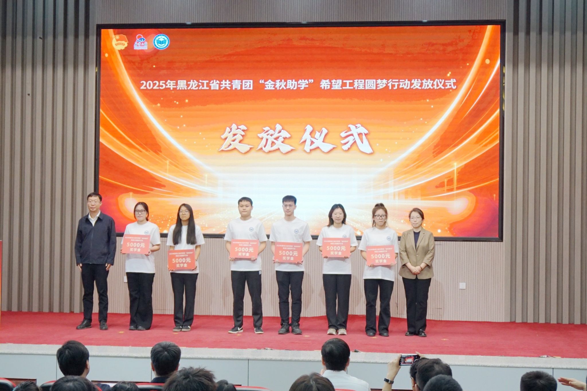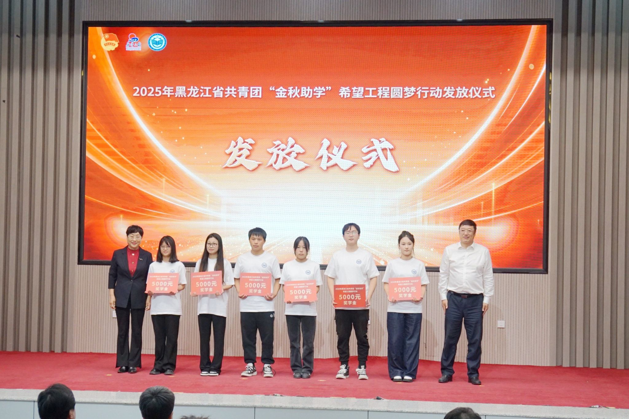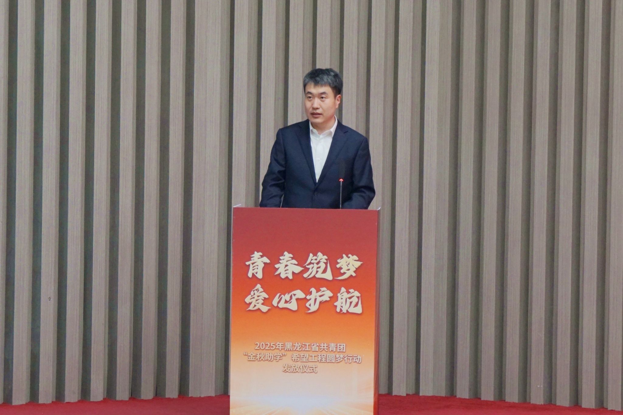 9月23日上午,2025 年黑龙江省共青团“金秋助学”希望工程圆梦行动奖学金发放仪式在sunbet申搏日新大厦举行。共青团黑龙江省委员会副书记张涛,中共齐齐哈尔市委副书记刘振江,sunbet申搏党委副书记张文治,黑龙江省希望工程捐助中心主任杜晶,黑龙江北大仓集团有限公司党委书记、总裁隋熙凤,共青团齐齐哈尔市委员会书记王刚出席仪式。sunbet申搏18名受助学子代表,以及各县(市)区团组织、爱心企业代表共300余人参与此次活动。