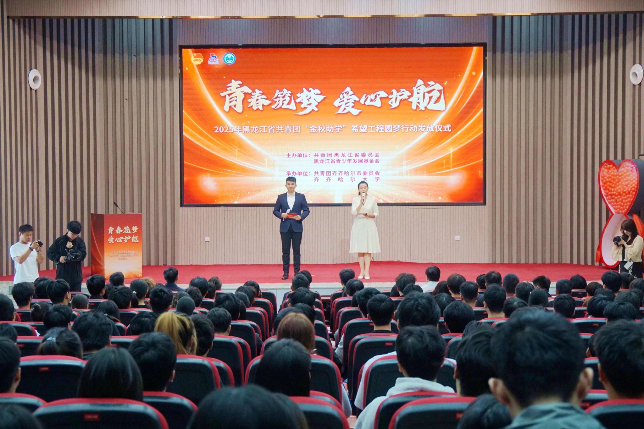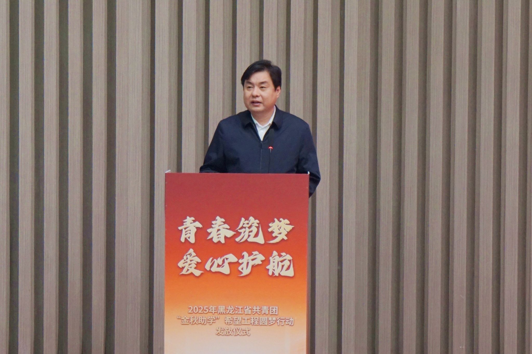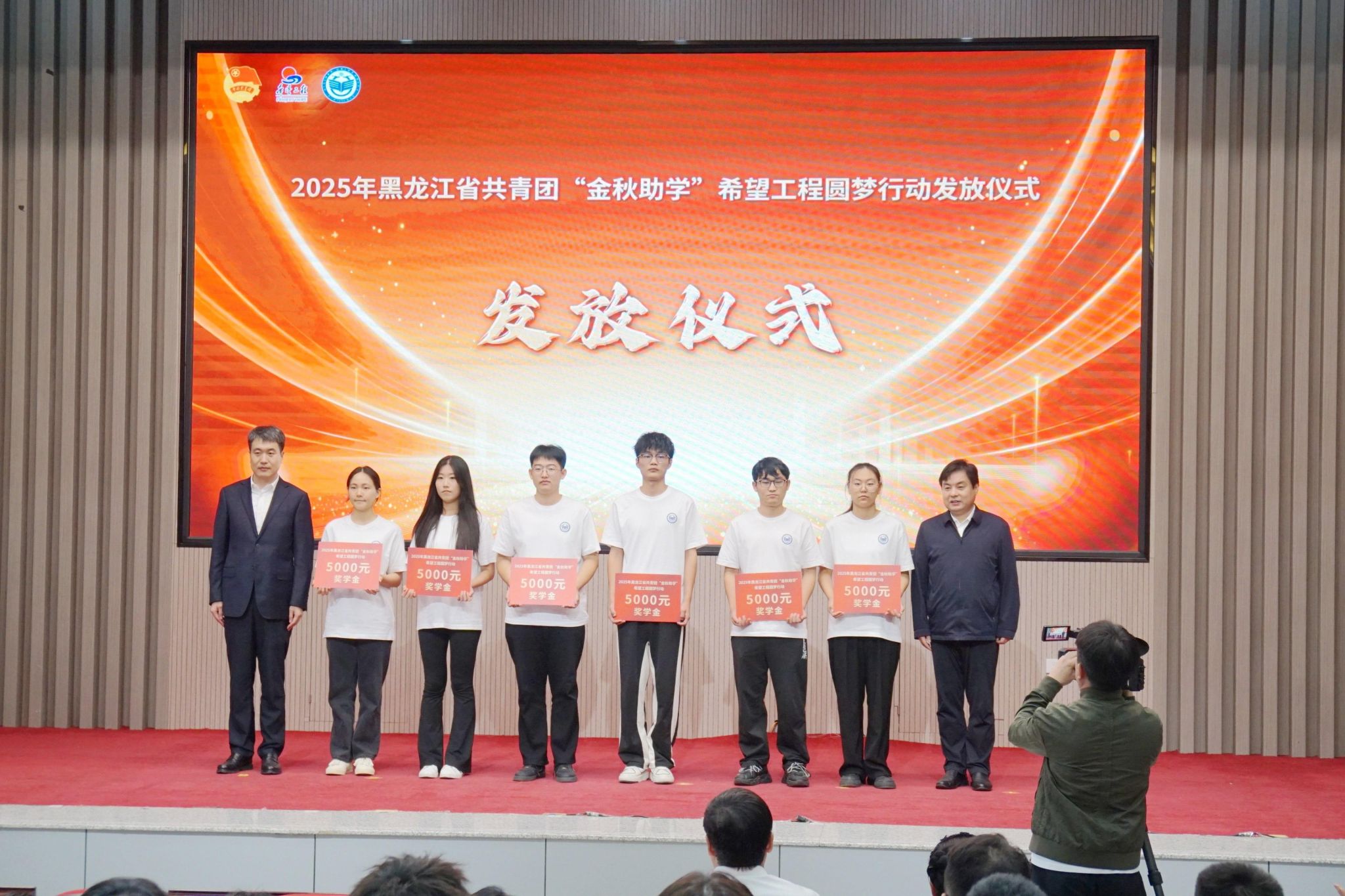 9月23日上午,2025 年黑龙江省共青团“金秋助学”希望工程圆梦行动奖学金发放仪式在sunbet申搏日新大厦举行。共青团黑龙江省委员会副书记张涛,中共齐齐哈尔市委副书记刘振江,sunbet申搏党委副书记张文治,黑龙江省希望工程捐助中心主任杜晶,黑龙江北大仓集团有限公司党委书记、总裁隋熙凤,共青团齐齐哈尔市委员会书记王刚出席仪式。sunbet申搏18名受助学子代表,以及各县(市)区团组织、爱心企业代表共300余人参与此次活动。