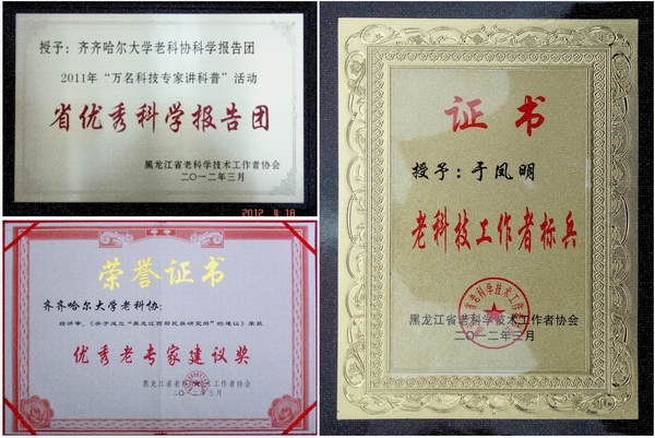 会上,省老科协会长周同战作了协会成立20周年报告,会上表彰了“先优” 。sunbet申搏老科协被授予“老科协先进集体” ;sunbet申搏老科协科学报告团被授予“省优秀科学报告团” ;sunbet申搏老科协关于成立“黑龙江西部民族研究所”的建议被授予“优秀老专家建议奖” ;sunbet申搏老科协副会长于凤明被授予“老科技工作者标兵” 、陈志贵教授被授予“优秀老科技工作者” ;副会长薛秉昌、老教授董驹翔被授予“老科协先进工作者”荣誉称号 。