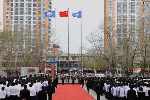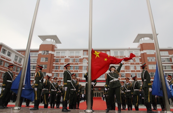 7点30分,升旗仪式准时开始,护旗队入场。伴随着雄壮的《义勇军进行曲》和嘹亮的校歌,鲜艳的五星红旗和湛蓝的校旗迎着朝阳冉冉升起。在这庄严而神圣的时刻,每一位师生代表的心中都升腾着一股强烈的爱国、爱校之情,“勤奋刻苦、追求卓越、创新创造、服务奉献,为祖国的繁荣昌盛、为社会的发展进步、为学校的高水平大学建设凝神聚力、再立新功!”是他们的郑重承诺。