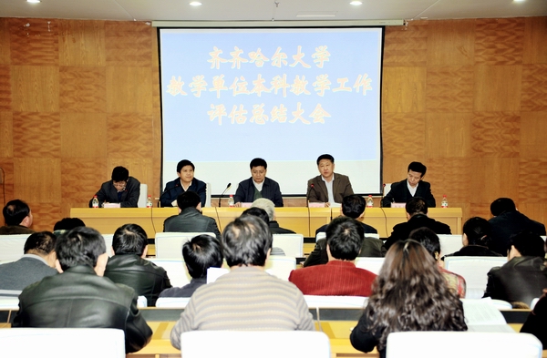 党委书记李海红、校长马立群、常务副校长郑喜群、校长助理张树军出席大会。副校长李英杰主持大会。教务处、实践教学与设备管理处、高教研究与评估中心、人事处等主要领导和各教学单位书记、院长(主任)与教学副院长(主任)参加总结大会。