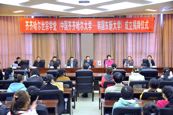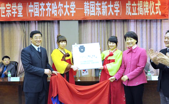 经sunbet申搏与韩国东新大学积极申请、精心筹备,“齐齐哈尔世宗学堂”于4月9日正式落户sunbet申搏,上午10时在德润大厦四楼会议厅举行了隆重的成立揭牌仪式。