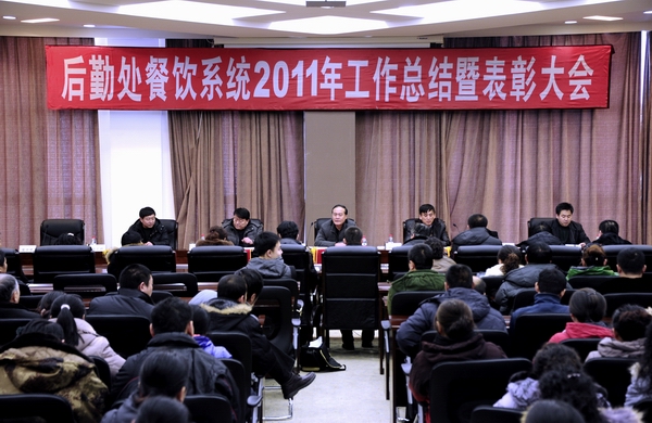 1月7日下午,后勤处在德润大厦四楼会议室召开2011年度伙食工作总结表彰大会。副校长王刚出席会议,后勤处班子成员、各科科长、各食堂经理及伙食系统全体员工共计200余人参加了会议,会议由后勤处主管伙食工作的副处长杨庆忠主持。