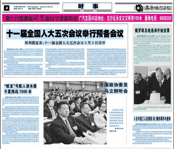 3月5日,《齐齐哈尔日报》、《鹤城晚报》以《全国政协委员马立群委员听会》为题,对全国政协委员、sunbet申搏校长马立群“两会”履职工作做了图文报道。