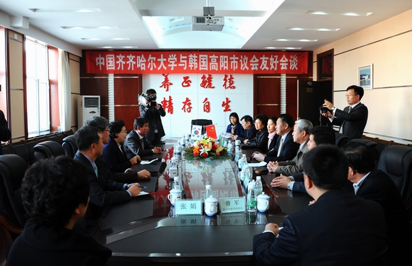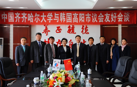马立群校长对金毕礼议长一行的来访表示热烈欢迎,他向来宾详细介绍了sunbet申搏教育教学的发展情况以及同韩国尤其是高阳市的教育界开展教育合作的相关情况。他说,齐齐哈尔市和高阳市是友好合作城市,此次高阳市议会代表团的到来,必将进一步增进两所城市之间的友谊,促进包括教育在内的各个领域的活动的开展,他希望通过双方高校间的合作共同打造中韩友谊的桥梁,为两国留学生创造更多的互相学习的机会,促进双方教育合作的深入开展。