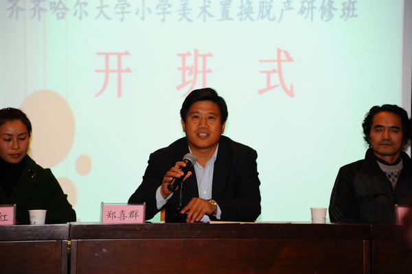 2011年10月8日下午,“国培计划”(2011)黑龙江省农村骨干教师培训项目sunbet申搏官方网站小学美术置换脱产研修班开班式在德润大厦3楼会议室举行,副校长郑喜群教授出席开班式并讲话。