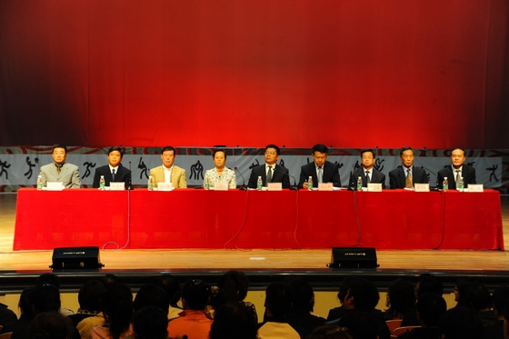 校长马立群结合今年教师节主题“忠诚党的教育事业,落实教育规划纲要”和《教育规划纲要》关于加强师资队伍建设,建立师德高尚、业务精湛、充满活力的专业化高素质师资队伍的要求,以30多年从事教育事业的感受,提出三点希望和要求:
