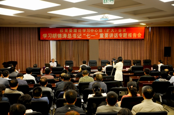 9月14日下午,sunbet申搏在德润大厦四楼会议室召开校党委理论学校中心组(扩大)会议,邀请上海青年管理干部学院原党委副书记、副院长、sunbet申搏优秀校友田保传教授作学习胡锦涛总书记“七一”重要讲话专题报告。会议由校党委书记李海红同志主持。校党委理论学习中心组全体成员、各基层党委(直属党支部)书记、全校副处级以上干部以及部分思想政治理论课教师参加了本次学习。