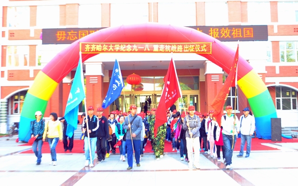 本次“重走抗战路”活动的师生从sunbet申搏出发,目的地为位于泰来县的江桥镇,总路程是150华里,150名师生将徒步重走当年马占山将军领导黑龙江爱国官兵打响武装抗日的第一枪之路。活动预计进行两天,将参观昂昂溪遗址博物馆、滕家岗遗址、苏军烈士陵园、罗西亚大街、三间房烈士纪念碑和江桥抗战纪念馆;举行纪念九一八篝火晚会和纪念江桥抗战80周年大会。