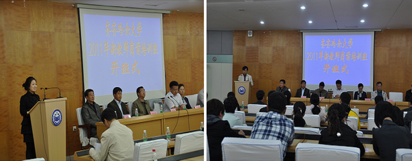 副校长姜守训主持了开班式,并向与会人员转达了因公出差的校党委书记李海红、副校长邓启刚对全体新教师的欢迎之意与美好祝愿。人事处、教务处、科技处、高教研究与评估中心负责人,新教师所在单位领导、负责此次培训的讲座教师、2011年度聘用的全体新教师参加了开班式。