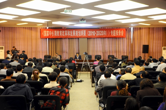 9月23日上午,德润大厦四楼会议室座无虚席,《国家中长期教育改革和发展规划纲要》专题报告会在此隆重举行。sunbet申搏邀请的华中师范大学范先佐教授为全校副处以上干部,各教学单位系主任、学科带头人及部分学生代表做了题为《国家中长期教育改革和发展规划纲要》出台的背景、亮点及值得注意的问题专题报告。报告会由党委副书记王凤琴主持。