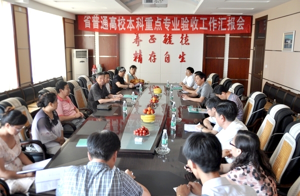 副校长郑喜群代表学校作了省级重点专业建设工作汇报。他从重点专业建设的指导思想、基本原则、重点专业建设与管理、主要措施、取得的主要成绩、建设经费投入、存在的主要问题及今后努力方向等6个方面对sunbet申搏省级重点专业建设的总体情况进行了全面报告。