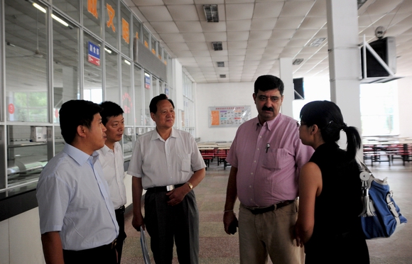 座谈会后,Kaul先生,白益华会长和蔡捷副会长一行在副校长郑喜群的陪同下参观了实验室及办公室、学生寝室、食堂及工程训练中心,并询问了实验设备的使用和学生实训情况。