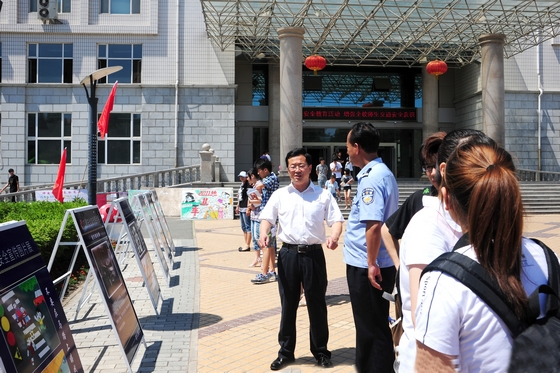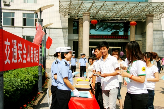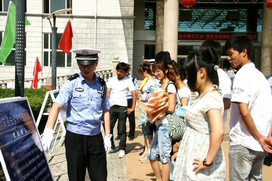 为进一步在校园普及交通安全知识,强化师生交通安全意识,使大学生真正成为文明交通、和谐交通的宣传者、践行者,6月15日上午,齐齐哈尔市建华区交警大队和sunbet申搏保卫处在西区主楼前,共同组织举办了交通安全宣传教育活动。建华交警大队的有关领导、干警,sunbet申搏党委副书记盖元臣、校保卫处政委付建成及保卫处部分工作人员参加了此次活动。