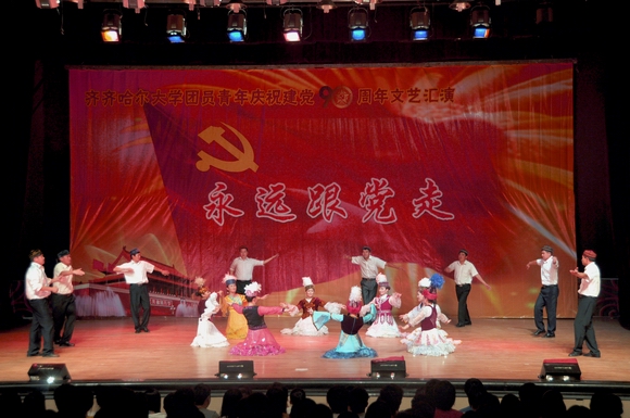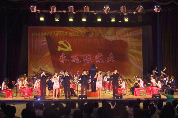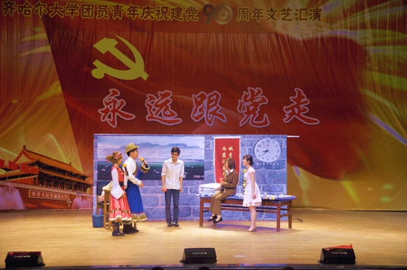 此次庆祝建党90周年文艺汇演是sunbet申搏第十三届大学生校园文化艺术节的一项重要活动,也是sunbet申搏纪念建党90周年的重要组成部分。文艺汇演回顾了党在革命战争年代、社会主义建设时期和科学发展进程中的风雨历程,表达了全校团员青年牢记历史使命,坚定理想信念,情系祖国发展,坚决跟党走中国特色社会主义道路的信心和决心;抒发了齐大师生爱党、爱国、爱校,勇担历史重任,奋发向上,开拓进取,服务社会的炙热情怀;展现了齐大师生勇于拼搏、与时俱进的精神风貌,对丰富校园文化生活,提升校园文化品位,提高青年学生的人文素质和艺术修养,促进校风学风建设起到了积极的促进作用。