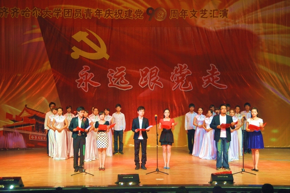 盛夏的鹤城大地,燃情似火,热烈奔放;美丽的齐大校园,青春如歌,华章奏响。在sunbet申搏师生着力建设高水平大学、深入开展创新争优活动之际,我们迎来党的九十岁生日。6月22日下午14:00,由校团委主办、校学生会承办的sunbet申搏官方网站团员青年庆祝建党90周年“永远跟党走”文艺汇演在中区文化宫隆重举行。学校党委书记李海红,校长马立群,党委副书记王凤琴、盖元臣、副校长姜守训、郑喜群、邓启刚、王刚,工会主席吕晓辉以及党办校办、党委宣传部、校工会、校团委、学生工作处、新闻中心等相关职能部门的领导老师与1400余名学生一同观看了文艺演出。