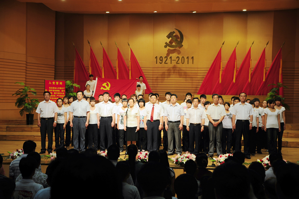他强调,我们纪念中国共产党成立90周年,最重要的就是要继承和发扬党的优良传统,更加自觉地贯彻落实科学发展观,全面落实学校的十二五规划,扎实推进有特色高水平大学建设,努力实现学校新一轮发展。这是时代的要求,是广大师生的愿望。实现上述奋斗目标关键在于加强党的建设,充分发挥党组织的政治核心作用和党员的先锋模范作用,始终做到“围绕中心抓党建,抓好党建促发展”。