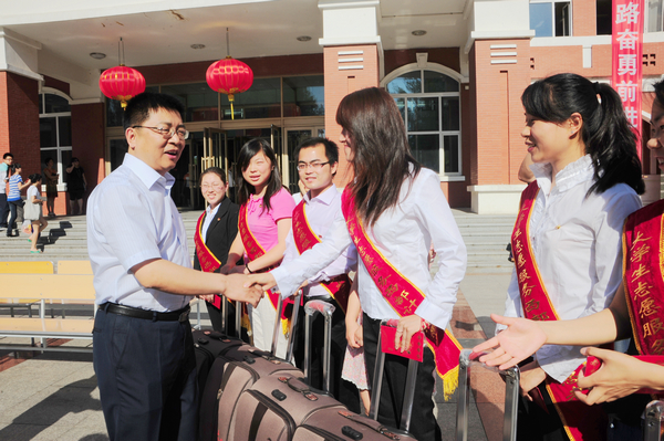 校党委书记李海红亲切勉励大学生西部计划志愿者:“纸上得来终觉浅,绝知此事须躬行。”希望你们在西部的志愿服务实践中,深入学习贯彻胡锦涛总书记在庆祝中国共产党成立90周年大会上的重要讲话和给北大第十二届研究生支教团成员的回信精神,牢记母校师长的教导和父母的嘱托,弘扬“奉献、友爱、互助、进步”的志愿精神,积极主动地向实践学习、向人民群众学习,坚定理想信念,增长知识本领,锤炼品德意志,矢志奋斗拼搏,在人生的广阔舞台上充分发挥聪明才智、尽情展现人生价值,让青春在为党和人民建功立业中焕发出绚丽光彩。