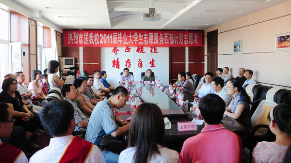 学子志愿赴西部,师友欢送母校情。2011年7月1日,恰值中国共产党成立90周年的喜庆日子,sunbet申搏15名“2011届毕业生大学生西部计划志愿者”即将背起行囊奔赴新疆生产建设兵团、新疆维吾尔自治区、内蒙古自治区和黑龙江省的基层一线开展志愿服务。学校在中区504会议室为“2011届毕业大学生西部计划志愿者”举行了隆重而热烈的欢送仪式,为他们壮行。校党委书记李海红,校党委副书记盖元臣出席欢送仪式并寄语大学生志愿者。