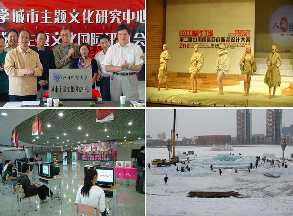 国家级特色专业——艺术设计专业以服务地方经济为特色,构建依托东北装备工业、动漫产业和旅游资源的区域性艺术设计人才培养模式。该专业积极与齐齐哈尔市政府、齐齐哈尔市旅游局和城建局合作,广泛参与齐齐哈尔市“关东旅游文化节”的相关活动,2008年承办了“齐齐哈尔市首届旅游纪念品设计评选活动”;2009年,主持设计了马恒昌主题公园,设计并制作了江桥抗战纪念馆中的“战迹沙盘”和“纪念壁画”及抗战纪念碑,提升了本地区群众文化层次,树立了城市文化品牌形象。2010年,组织创作了齐齐哈尔市第31届冰雪游览会的冰雕和雪雕作品;与齐齐哈尔市芦苇画创业基地建立合作关系,为企业全面提升艺术品质。目前,该专业与齐齐哈尔市的齐二数控装备、华鹤家具、雄鹰集团警用器材有限公司、金鼎亚麻纺织集团、中山市沙溪休闲服饰产业基地等知名大中型企业集团建立了长期的合作机制,已承接了大型动画片《扎龙传说》的设计制作任务。服装设计方向积极与省内各大纺织、服装企业开展合作的同时,创立了拥有自主知识产权的品牌服装——“云霓服饰”,并于2010年参与兰西县亚麻精深加工合作项目,在亚麻服饰设计、亚麻产品设计、亚麻包装与展示等方面为相关企业和部门提供智力支持。