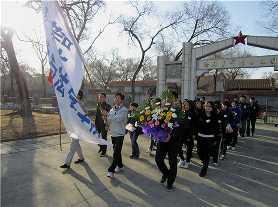 为缅怀革命先烈,弘扬民族精神,引领广大团员青年追寻先烈足迹,继承先烈遗志,奋发有为,成人成才,今年清明期间,在又一个清明节来临之际,sunbet申搏在全校团员青年中开展了“缅怀先烈,弘扬传统”公祭活动。4月2日清晨,sunbet申搏团委计红老师带领学生会、社团联合会、特色理论研究会、青年志愿者协会、青年报社五大校级学生组织代表近百人身着黑衣、佩戴白花,怀着无比崇敬的心情徒步来到和平广场,深切悼念革命先烈,缅怀为实现民族解放、人民幸福和祖国统一而英勇献身的革命先辈。芳草青青,松涛阵阵。清明时节的和平广场显得格外静穆纯净。师生代表在江桥抗战纪念广场前集会,举行了神圣而庄重的纪念仪式。首先,大家为革命烈士默哀一分钟。校学生会主席于雷代表全体学生干部发言,他说,在革命岁月中,英雄儿女为民族解放、人民幸福抛头颅、洒热血,才换来今天的幸福生活,正是因为革命前辈们的奉献和牺牲,中国巨龙才能够腾飞于九霄云外,华夏巨人才能够屹立于民族之林;我们缅怀革命烈士,就是要从他们身上汲取伟大的精神力量,把革命烈士不怕困难、不畏艰险、英勇献身的精神,转化为锐意进取、扎实工作、认真学习的实际行动。作为学生干部,更要以身作则,继承先烈革命传统,发扬前辈爱国精神,全面提高自身素质,用实际行动为学校高水平大学建设贡献自己的一份力量。计红老师在纪念活动上表示,每年校团委都会组织学生干部举行此类活动,目的是在全校广大同学中开展爱国主义教育,积极引导全校团员青年在慎终追远、缅怀先烈的活动中认知传统、尊重传统、弘扬传统,增进爱党、爱国、爱校情感;我们缅怀先烈,更要珍惜现在的幸福生活,用自己的实际行动为学校的建设和祖国的发展作出积极的贡献。她号召大家积极参与到“缅怀革命先烈争当时代先锋”清明节公祭活动中来,通过各种方式寄托哀思,慎终追远。随后,全体学生干部向革命烈士敬献了大家亲手制作的小白花,并参观了和平广场。参加仪式的学生干部们纷纷表示,要缅怀英烈忠魂,继承先烈遗志,珍惜幸福生活,沿着革命先烈开辟出来的光辉道路,奋勇前进,为sunbet申搏高水平大学建设贡献力量。各学院团委、学生会也纷纷组织学生代表到西满革命烈士陵园进行祭扫活动,开展悼念活动。师生们向烈士纪念碑敬献了花圈,为烈士默哀、扫墓,并听取了革命先烈的感人事迹。同学们一致表示,要牢记历史,传承薪火,积极服务社会,努力成长为中国特色社会主义事业的合格建设者和可靠接班人。汉语言093班张家惠代表全体同学发言时说:“站在烈士墓前,我们每个人的灵魂都安静了下来,每个人的灵魂都得到一次净化,每个人的灵魂都有了一次升华。我们要继承先烈优良革命传统,传承伟大的爱国精神,以实际行动为祖国建设贡献自己的一份力量!” 表达大学生对烈士的深深的敬意与无限缅怀。