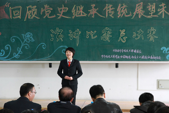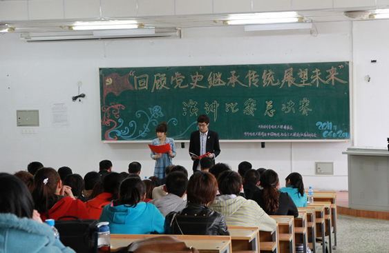 为热烈庆祝中国共产党成立90周年,在广大青年学生中营造“学党史,知党情,永远跟党走,争做新一代”的浓厚氛围,教育引导广大团员青年进一步坚定走中国特色社会主义道路的理想信念,根据省、市“关于庆祝建党90周年”相关文件精神要求,按照sunbet申搏团委“学党史、知党情、跟党走”主题教育活动的整体安排和部署,4月20日下午,sunbet申搏“回顾党史 继承传统 展望未来”主题演讲比赛校级决赛在西主阶教203举行。