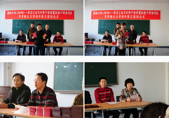 为了更好地将“国培计划”落到实处,文学与历史文化学院中文系集全系教师力量,有效实施好“集中研修、实践观摩、总结反思、再观摩、再总结反思、再研修”等六个阶段的培训,开展了集中听课评课、听报告、分组研讨、案例分析、教案设计、自我感悟、经验分享、观摩实践、观摩优秀课和优秀教学成果等培训活动,还编辑印制了7期《国培计划简报》,编印了《国培计划——黑龙江省农村初中语文骨干教师置换培训材料汇编》,做成“国培计划专题片”和数据盘赠送给全体学员,让他们带回工作岗位继续学习和研讨。