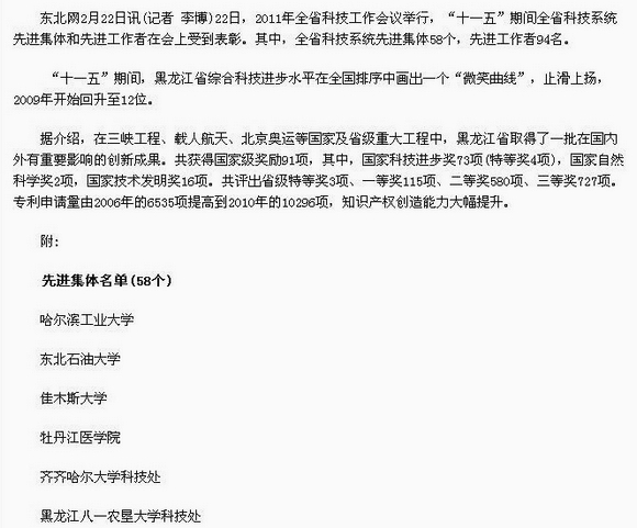 2011年2月22日,2011年黑龙江省科技工作会议在哈召开。