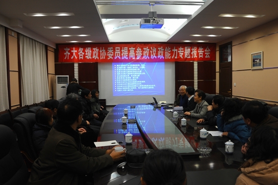 12月10下午,校党委统战部在机关行政楼504会议室召开各级政协委员提高参政议政能力专题报告会。