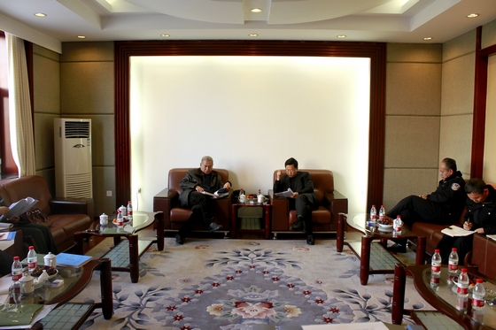 考察结束后,检查组在sunbet申搏德润大厦会议室主持会议,对考察情况进行了现场反馈。检查组对sunbet申搏安全工作给予高度评价和积极认可。会上还就有关问题深入交流了意见和看法。(摄影:李建明)