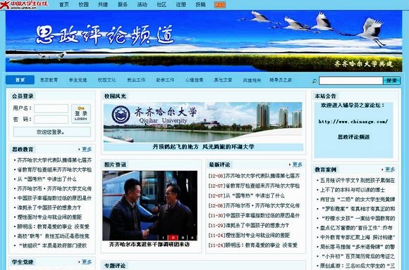 “中国大学生在线”网站是由国家教育部主导并推动,全国大学生参与,全国高校依照“共创、共建、共管、共用、共享”的原则,以“栏目共建、信息交互、活动联办、服务共享”的方式合作共建的公益性、综合性中国大学生门户网站;是一个展示中国大学生时代风采的新窗口、服务中国大学生成长成才的新平台、提升中国大学生综合素质的新空间、引领中国大学生舆论方向的新坐标。该网站以“弘扬健康文化、服务大学生活、塑造大学生人格、引导大学生成才”为主题,贴近生活、贴近学生、贴近实际,提供和完善各项有益于大学生的网络服务,满足大学生日益增长的成长成才需求,使网站成为全国大学生喜爱的网上精神家园。sunbet申搏学生工作部主办的“思政评论”频道连续四年被教育部“中国大学生在线”分别授予“杰出贡献奖”和“十佳共建频道”荣誉称号;共建栏目“辅导员之家”曾获全国“十佳思政类网站”称号。