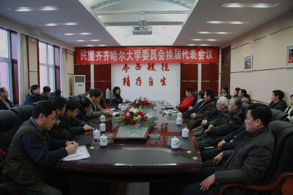 12月15日下午,民盟sunbet申搏官方网站委员会盟员代表会议在学校504会议室隆重举行。民盟齐齐哈尔市主委、市政协副主席孙建平,sunbet申搏官方网站党委宣传部、统战部部长李敏义,学校正处级统战员、宣传部、统战部副部长田志峰出席了会议,民盟齐大8个基层支部的委员代表参加了会议。会议由民盟sunbet申搏官方网站副主委朱子娟主持。