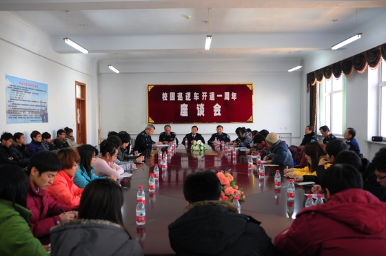 座谈会上,校武装部政委兼保卫处副处长付建成详细回顾总结了校园巡逻车开通一周年来的工作情况。