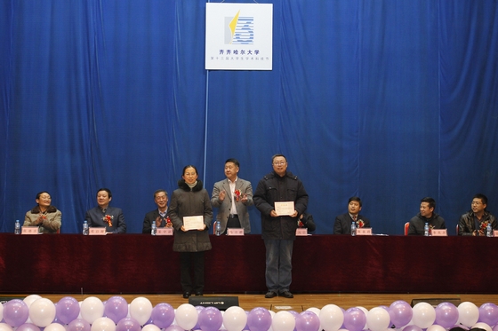 副校长郑喜群宣读了《2010年度在全国、全省大学生学术科技竞赛活动中获奖集体和个人名单》。与会校领导分别为190名年度课外学术竞赛活动学生先进个人和62名优秀指导教师代表颁奖。