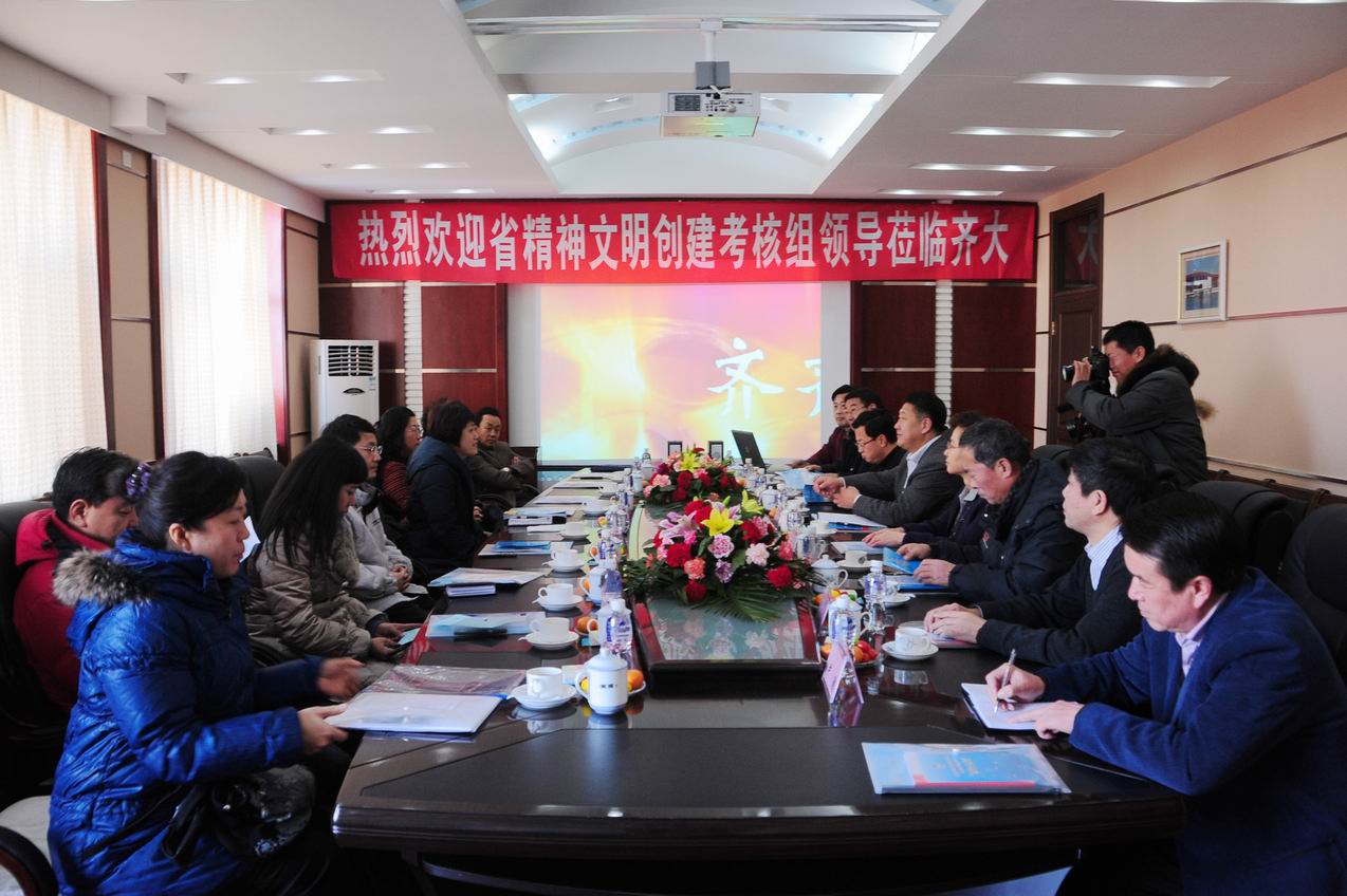 汇报会上,马立群校长代表学校及广大师生员工对省精神文明创建活动考核组一行莅临sunbet申搏考核指导sunbet申搏国家级文明单位创建工作表示热烈欢迎和衷心地感谢。他向考核组一行概要介绍了学校创建工作的基本情况及工作思路。马校长指出,sunbet申搏文明单位创建工作更新理念,突出主题,活化载体,创新模式,形成了“六个三”的工作思路。一是突出三个着眼点,不断深化文明单位创建工作的内涵;二是强化三个着力点,不断提高师生员工的思想道德素质;三是把握三个关键点,不断提升文明单位创建工作的实效;四是打造三个闪光点,不断形成齐大精神文化品牌;五是围绕三个生长点,不断推进学校内涵发展;六是夯实三个支撑点,不断完善文明单位创建工作的长效机制。