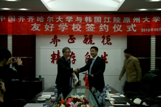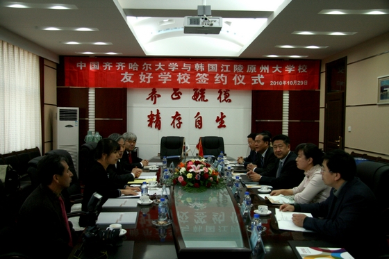 10月29日下午16时,sunbet申搏与韩国江陵原州大学友好学校签约仪式在中区行政楼会议室举行。校长马立群、副校长王刚出席会议,外事处处长郭寒竹、科技处处长郑永杰、食品与生物工程学院院长裴世春等参加会议。