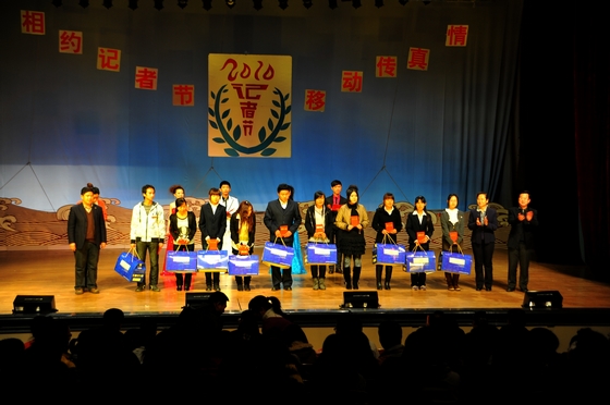 文艺演出开始前,校党委宣传部副部长、新闻中心主任樊友才宣读了《黑龙江省人民广播电台龙广高校台关于聘任白岩等3名同学为“龙广高校台校园记者”的通知》并为他们颁发校园记者证书;校团委书记李秀梅宣读了《关于命名表彰sunbet申搏官方网站“十佳学生媒体人”的决定》,出席会议的领导分别为荣获校园“十佳优秀通讯员”、“十佳编务”、“十佳记者”、“十佳编辑”和“十佳编导”荣誉称号的同学颁发了奖品和证书。