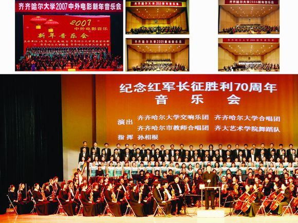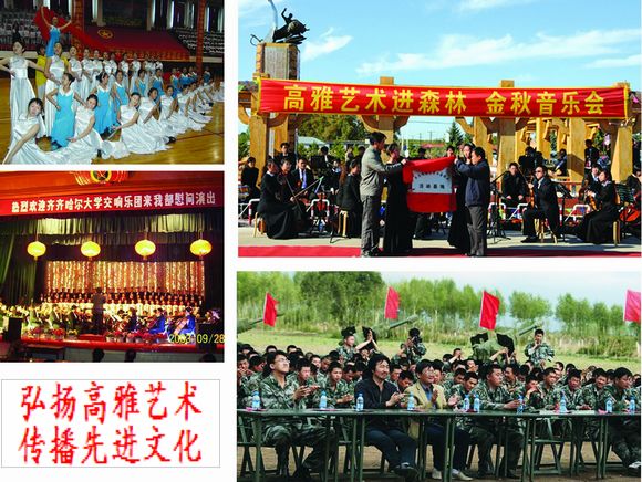多年来,sunbet申搏发挥交响乐团、师生合唱团等专业艺术团队的资源优势,去工厂、部队、企业还是农村,以“文化惠民工程”促进社会和谐,参加教育部高雅艺术进校园、绿博会、关东文化节、和平节、齐齐哈尔新年音乐会等演出180余场,承担群众文化展演任务300余场次,在弘扬高雅艺术中蜚声艺苑,香飘校园,辐射社会,成为sunbet申搏文化校园的响亮品牌;举办5次中韩美术文化交流活动和两届中国亚麻服饰设计大赛暨国际现代设计专家论坛,主持设计了马恒昌主题公园、江桥抗战纪念馆中的“战迹沙盘”和“纪念壁画”,发挥音乐厅、美术馆、文化宫、体育馆等群众文化硬件资源优势,共承担群众文化展演任务300余场次,提升了本地区群众文化层次,树立了城市文化品牌形象,每一场演出都让现场的观众听者动容,大有“既去而余音绕梁,三日不绝”之感。学校真诚邀请了莫斯科柴可夫斯基音乐学院“泰斗级”人物、世界著名指挥大师波里斯?杰夫林教授、中国交响乐团联盟主席、中国音乐家协会交响乐爱好者学会副会长、中国电影音乐学会特约理事、国家一级指挥卞祖善、全国著名钢琴大师刘诗昆等大师,开展了广泛的高雅文化交流活动。充分发挥交响乐团、师生合唱团等专业艺术团队的群众文化软件资源优势,活跃丰富演出市场,在教育部高雅艺术进校园巡回演出、全国第四届特奥会、中国?哈尔滨第29届哈尔滨之夏音乐会、龙沙音乐会、劳动湖之夏音乐会、一年一度的绿色博览会、连续多年的齐齐哈尔新年音乐会、关东文化旅游节、赴黑龙江省农垦总局九三分局进行慰问演出、华安集团有限公司、大庆石化总厂、举办慰问驻齐部队官兵专场音乐会专场等演出达180余场。产生强烈反响,赢得了省教育厅的特别嘉奖。发挥音乐厅、文化宫、体育馆等群众文化硬件资源优势,共承担群众文化演出任务260余场次。经教育部审批,在2006年的“高雅艺术进校园”活动中,sunbet申搏交响乐团将在我省各高校做巡回演出。黑龙江日报2006年6月11日在第一版以《高雅艺术打造一流名校 sunbet申搏官方网站交响乐团发展启示录》为题做了专门的报道。