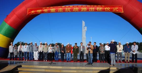 仪式最后,sunbet申搏校长马立群宣布“大学生重走抗战路队伍启程”。随着sunbet申搏校长马立群发出“启程”的号令,参加此次“重走抗战路”活动的全体师生踏上了征程。