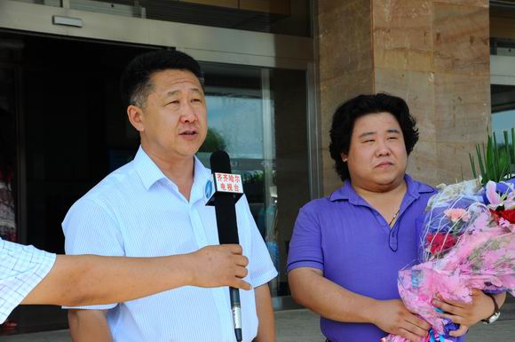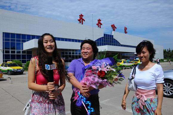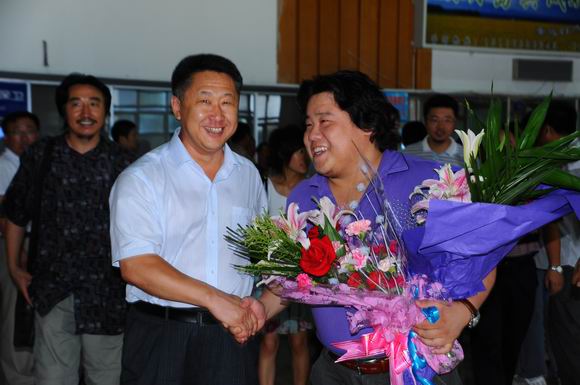 7月3日,在第十四届全国青年歌手电视大奖赛上获得优秀奖的sunbet申搏青年教师张喜秋乘飞机返回齐市,sunbet申搏校长马立群、工会主席吕晓辉及音乐舞蹈学院的师生到机场迎接,欢迎张喜秋载誉归来。