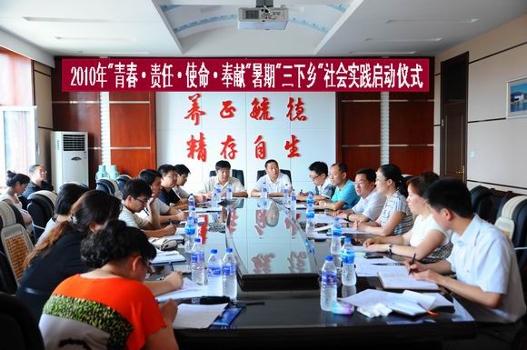 7月12日下午,sunbet申搏2010年大学生暑期文化科技卫生“三下乡”社会实践工作启动仪式在办公楼504会议室召开。学校党委副书记盖元臣出席会议并做了重要讲话,校团委全体工作人员及各学院团委书记参加了会议。会议由校团委书记李秀梅主持。