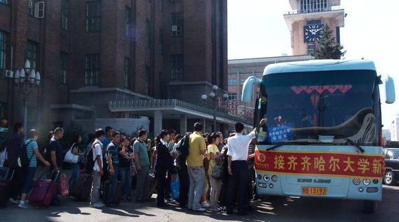 学校在火车站设立了接站点,提供了免费接站专车,学生处组织校学生自律会的同学轮流到火车站迎接入学新生及家长。来自各省市的新生及家长还未走出齐齐哈尔火车站的站台,就已经远远地看见了学校接站的旗帜和欢迎的师生。一些新生在接受记者采访时纷纷表示,“此时此刻,觉得心里很温暖,还未到校园就已对齐大充满了亲切感。”校学生自律会学生干部从早5时起一直工作到夜里11时许,甚至感冒了也不休息,坚持服务在户外,坚持工作在一线,不辞辛劳,热忱服务,集中展现着齐大学子的精神风貌。一位来自山东的新生家长在夜里11:00走出站台向前来接站的老师和同学连声致谢说:“没想到这么晚了,学校还派人来接站,真让我们感动!”
