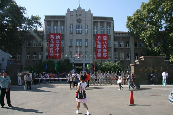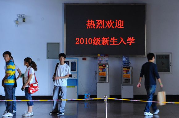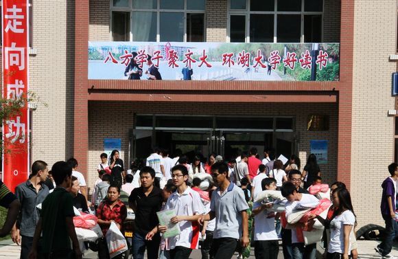 八方学子聚齐大,环湖大学好读书。“热烈欢迎2010级新同学”、“热烈欢迎来自祖国各地的精英学子”、“衷心祝愿广大新同学从这里走向成功”、“荷花映日笑纳莘莘学子,丹桂飘香喜迎八方来客”、“让新生满意,让家长放心!”“美好的大学生活,我们在一起度过!”等巨型条幅分外醒目鲜明;高高飘扬的氢气球下彩练高悬,迎风招展,一个个迎新站点前环列展板、标语、彩旗,将迎新现场装扮得格外喜庆、热烈。校园内外,人头攒动,青春飞扬,红花绿树掩映着楼宇,美丽的环湖大学张开怀抱,热情欢迎来自五湖四海的莘莘学子。教学楼、公寓楼、甬路、食堂、……到处洋溢着青春的笑脸,金秋的校园里涌动着和谐的乐章。