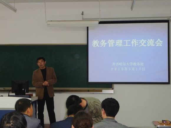 在交流会上,教务科教学调度杜楠楠老师结合学校综合教务管理网络平台的教学任务录入和排课流程,交流了教务管理软件的使用方法和技巧,并进行了现场演示。